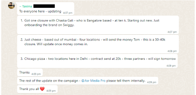 Tanima got 100 leads in 6 days and closed INR 70K in 1 day