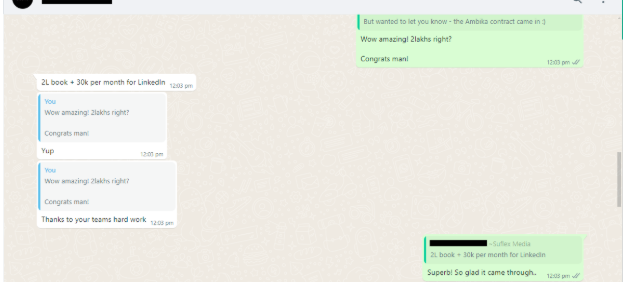 Personal Branding Client closed INR 2L Deal + 30K/month retainer